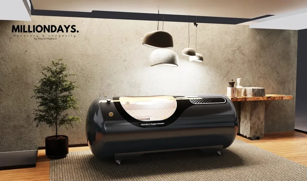 The MILLIONDAYS. x Dremenia Oxylife Extend combines innovative hyperbaric oxygen technology (HBOT) with state-of-the-art design to promote regeneration at the cellular level and sustainably improve your health. Designed for maximum efficiency and ease of use, this system sets new standards in longevity and recovery therapy.